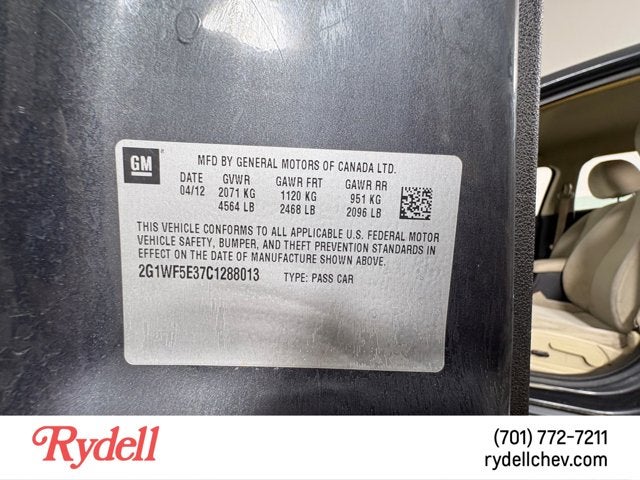 At Rydell Chevrolet GMC Cadillac, we offer no-haggle pricing to ensure a stress-free purchasing experience. Additionally, our 7-day money-back guarantee reflects our commitment to your satisfaction. Visit us today to test drive this exceptional 2012 Chevrolet Impala LS and discover the perfect vehicle to suit your needs.