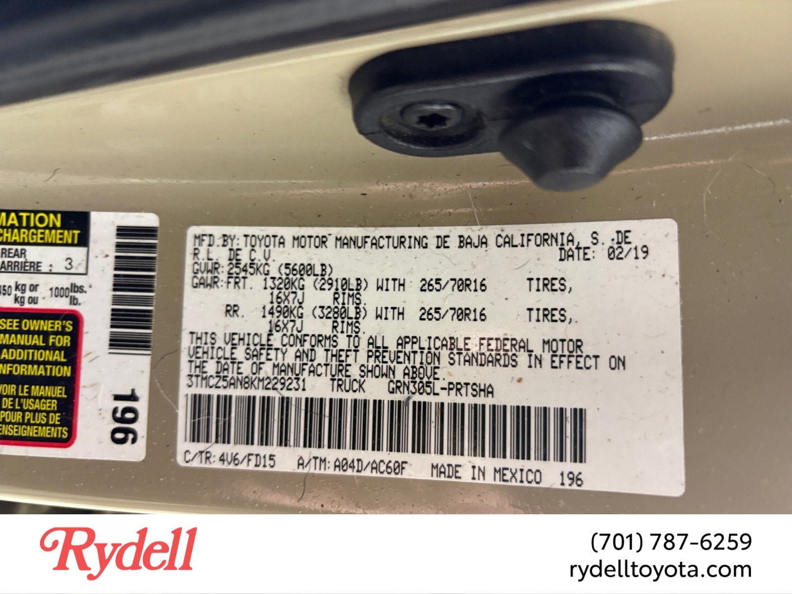 - Vehicle Name: Toyota Tacoma 4WD
