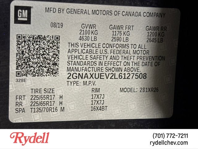 At Rydell Chevrolet GMC Cadillac, we offer no-haggle pricing to ensure a stress-free purchasing experience. Additionally, our 7-day money-back guarantee reflects our commitment to your satisfaction. Visit us today to test drive this exceptional 2020 Chevrolet Equinox AWD LT 1.5L Turbo and find the perfect vehicle to meet your needs.