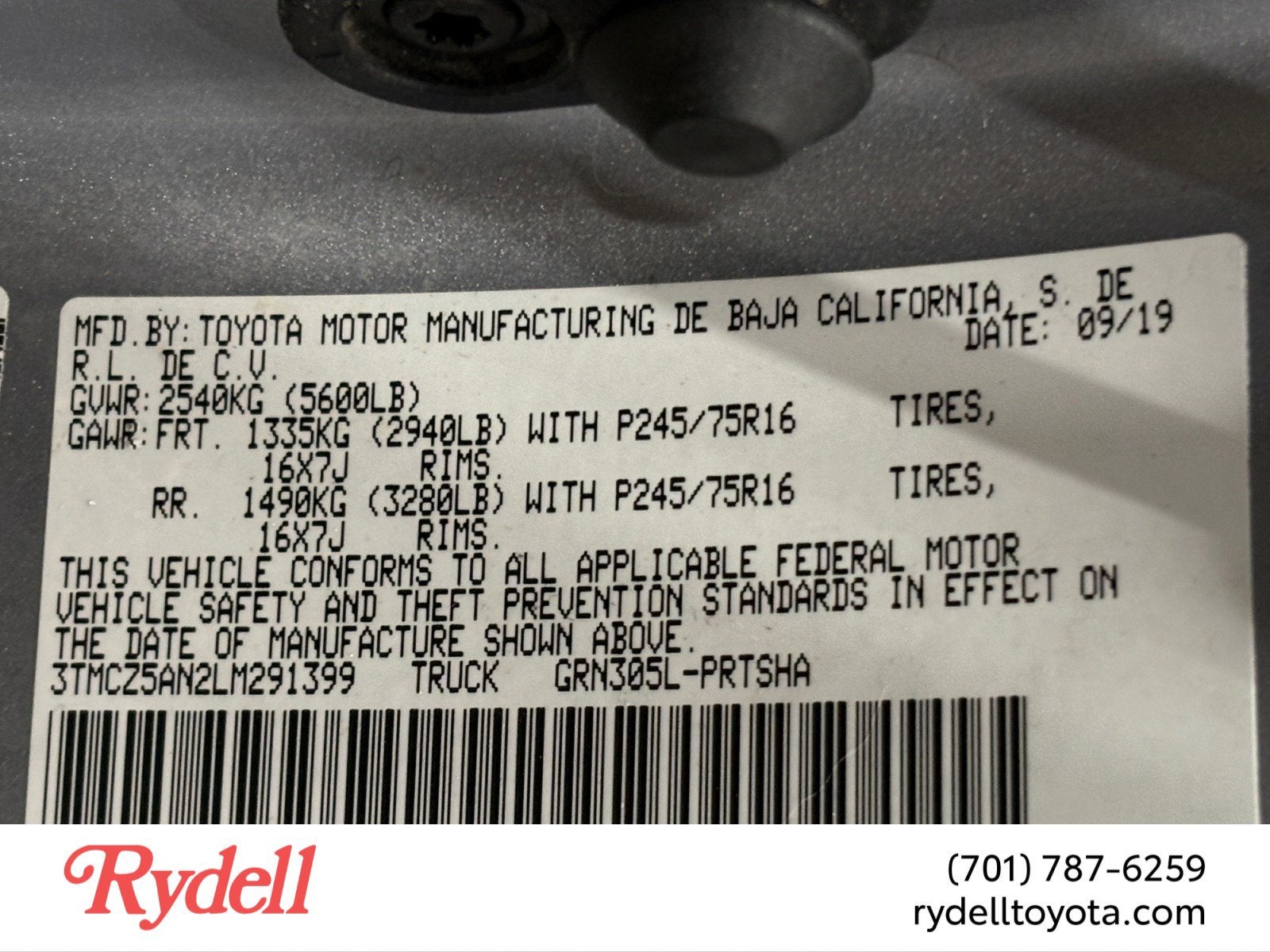 - Vehicle Name: Toyota Tacoma 4WD